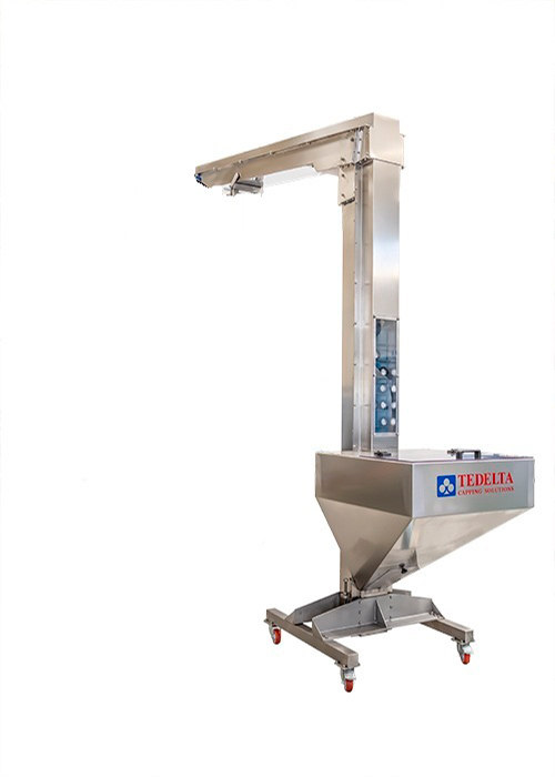 - Cap Transportation, metallic or plastic through conveyor belts, magnetic belts, air system.